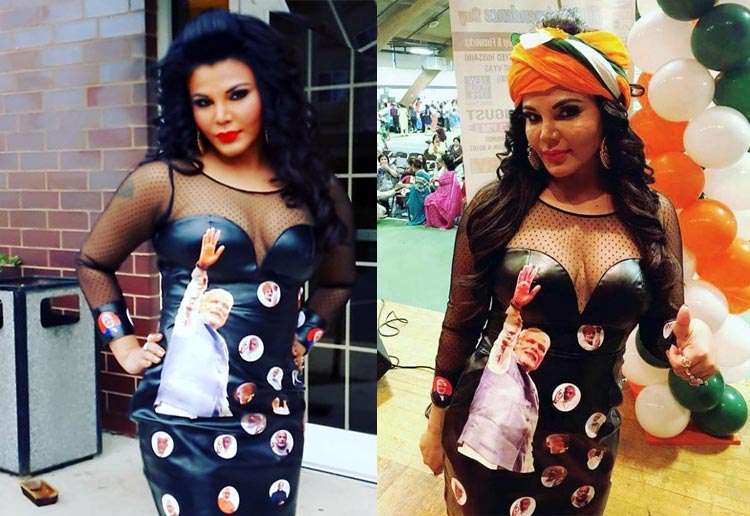 बलिउड आइटम गर्ल राखी सावन्तले नरेन्द्र मोदीको तस्बिर प्रिन्ट गरेर पहिरन डिजाइन गरेकी छिन्। मोदीको तस्बिर प्रिन्टेड कपडा लगाएकी राखीको तस्वीरले अहिले सामाजिक संजालहरुमा स्थान पाइरहेको छ।