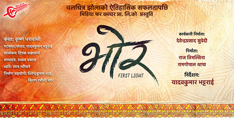 दुई बर्ष पहिले दर्शकमाझ आएको व्यापारिक तथा समिक्षात्मक रुपमा सफल फिल्म ‘झोला’ निर्माण टिम यतिबेला दोश्रो प्रोजेक्टको काममा व्यस्त छ। बिना कुनै प्रचार प्रसार गुपचुप रुपमा नयाँ फिल्म ‘भोर’ (फर्स्ट लाईट) छायांकन सकिएको छ। मध्य पुर्वी नेपालको जनकपुरमा छठ पर्वको अबसरमा पत्रकार सम्मेलन गरि निर्माण टिमले फिल्मको सम्पुर्ण छायांकन सकिएको जानकारी गरायो। सम्पुर्ण दृश्य जनकपुरमा छायांकन गरिएको फिल्मको पहिलो पत्रकार सम्मेलन पनि जनकपुरमा गरिएको हो।