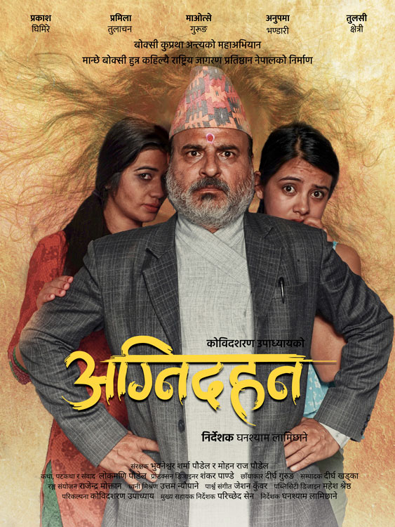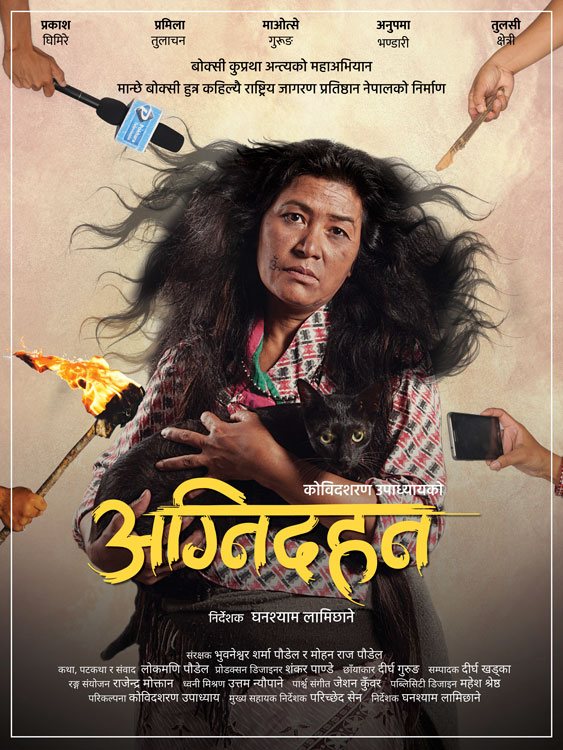 नेपाली चलचित्र ‘अग्नीदहन’को फस्ट लुक पोस्टर सार्वजनिक गरिएको छ। पत्रकार सम्मेलन गरि चलचित्रको निर्माण टिमले पोस्टर सार्वजनिक गरेको हो। नेपाली समाजमा विद्यमान रहेको बोक्सी प्रथालाई निर्मुल गर्ने उदेश्यका साथ राष्ट्रिय जागरण प्रतिष्ठान नेपालको सहकार्यमा यो चलचित्र निर्माण भएको हो।