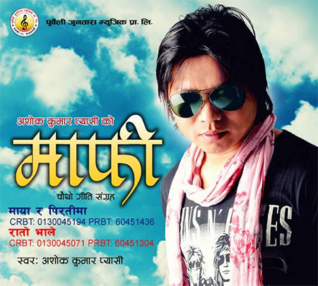 ग्ल्यामर नेपाल, काठमाडौँ । गायक अशोककुमार प्यासीले श्रोताका लागि ‘माफी’ नामक चौथो एल्बम लिएर आएका छन्। उदयपुर कटारीका गायक राईले यसअघि ‘आकाशको तारा गनेर’, ‘यो जुनीमा तिम्रै हुन पाउँ’ र ‘प्यासी’ गरी तीन गीति एल्बमहरु बजारमा ल्याईसकेका छन्।