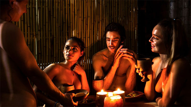 माइक र स्टेफनी साडाले संचालनमा ल्याएको यो रेष्टुरेन्टमा खाना खानको लागि पहिल्यै सिट बुकिङ गर्नुपर्छ। यसरी बुकिङ गरेर आएपछि पाँहुनालाई एउटा चेतावनी पत्र थमाईन्छ। जसमा लेखिएको हुन्छ ‘यो एउटा सभ्य रेष्टुरेन्ट भएको कारण अश्लिल क्रियाकलाप नगर्नुहोला।’ यो पत्र पढेपछि पाँहुनालाई एउटा कोठामा गयर निवस्त्र हुने समय दिईन्छ। उनीहरुले आफुले लगाएर आएको सबै लुगालाई फुकालेर एउटा दराजमा राख्नु पर्छ र शरीरमा कपडाको एउटा त्यान्द्रो पनि हुनुहुदैन।