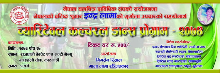 साथै उनको उपचारको लागि रकम जुटाउने उदेश्यका साथ नेपाल चलचित्र प्राबिधिक संघ (नेफ्टा) संगको सहकार्यमा नृत्य निर्देशक समेत रहेकी उनकी छोरी माला लामा रंजितकारले यहि पुष २७ गते राजधानी ब्याङ्क्वेट एण्ड मल्टीभेन्यु बनस्थली चोकमा च्यारिटेवल संस्कृतिक कार्यक्रमको आयोजना समेत गर्दैछन।