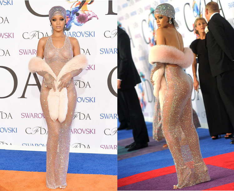 हलिउडका कलाकारहरु प्राय भइरहने सार्वजनिक कार्यक्रममा अनौठो किसिमका पहिरन लगाएर प्रस्तुत हुन्छन्। जो कार्यक्रमका प्रमुख आकर्षण पनि बन्छन्। हालै अमेरिकामा भएको सीएफडीए अवार्ड २०१४ मा पनि गायिका रिहाना त्यस्तै अजिब किसिमको पहिरनमा देखिईन्। उनले लुगा लगाए पनि भित्री अंगहरु प्रष्ट रुपमा देखिन्थे।