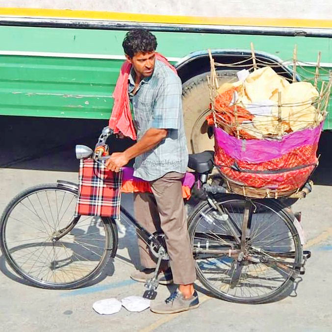 बलिउड अभिनेता ऋतिक रोशन हालका दिनमा सामाजिक सञ्जालमा राम्रै छाएका छन्। सामाजिक सञ्जालमा फैलिएको एक तस्वीरमा ऋतिकलाई चिन्न मुस्किल पर्छ। किनकी त्यो तस्वीरमा उनलाई साइकलमा पापड बेचिरहेको अवस्थामा देख्न सकिन्छ। बलिउडका कामूक हिरोको उपमा पाइसकेका ऋतिकको यो लुक्स देख्दा जोकोही पनि चकित परेका छन्।
