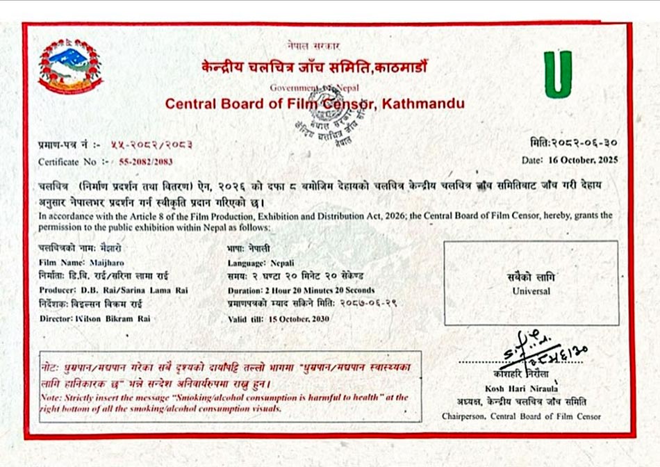‘मैझारो’ले पायो युनिभर्सल सर्टिफिकेट