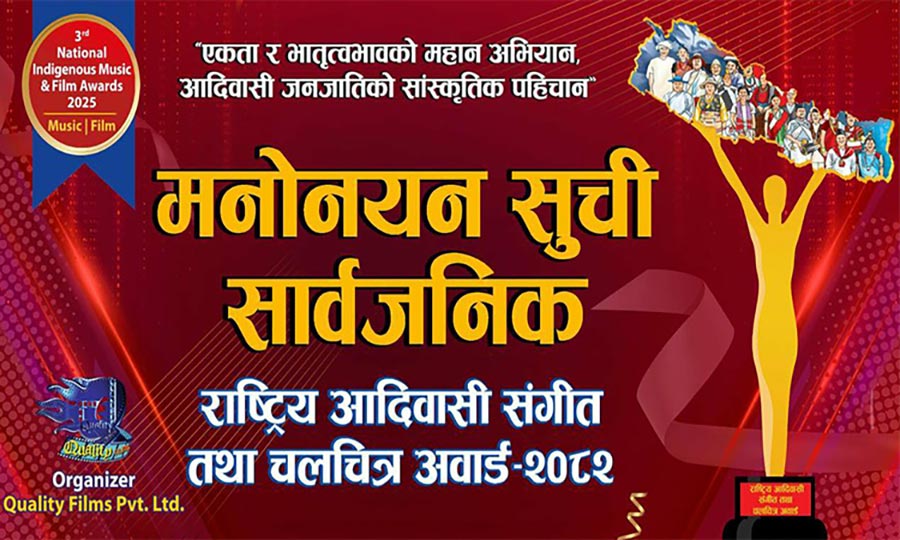 ‘तेस्रो राष्ट्रिय आदिवासी संगीत तथा चलचित्र अवार्ड – २०८२’को लागि प्राप्त आदिवासी जनजाति समुदायका गीत संगीत, तथा चलचित्रहरुलाई निर्णायक समितिले विभिन्न ३४ विधामा मनोनयन सूची जारी गरेको छ।