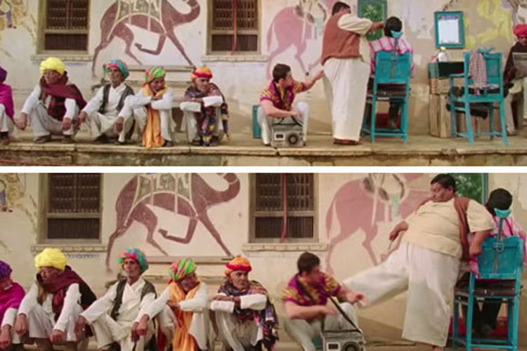 भिडियोमा हजाम बनेका अजयले दृश्यका लागि १२ टेक खानु परेको बताएका छन् । दृश्यमा आमिरले हजामको पाइजामा तान्नुपर्ने हुन्छ, जसकारण उनले लात खान्छन् । भिडियोको समय १ मिनेट २६ सेकेण्डको छ, जसले हजामलाई मात्र प्राथमिकता दिएको छ । फिल्मका निर्देशक राजकुमार हिरानी हुन् ।