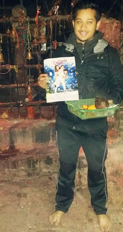 यसै साता त्यहाँ पुगेका संयमले मन्दिर अगाडि उभिएर एक हातमा पुजाको थाली र अर्को हातमा फिल्मको पोष्टर बोकेको तस्वीर आफ्नो फेसबुकमा हालेका छन् । फिल्म ‘सायद’बाट नायकका रुपमा डेब्यु गरेका संयम नेपाली फिल्ममा युवा पुस्ताका हट केक मानिन्छन् । उनले आफुले फिल्मको सफलताको लागि भगवानसँग प्रार्थना गरेको बताए । भोलिलाई लिएर नडराऊ र विगतलाई बिर्सेर वर्तमानमा बाँच भन्ने सन्देश बोकेको फिल्मका निर्देशक चर्चित फिल्म सम्पादक सुरेन्द्र पौडेल हुन्।