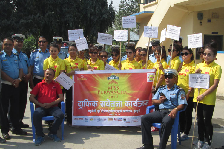काठमाडौं । पूर्वाञ्चलकै सबैभन्दा ठुलो सौन्दर्य प्रतियोगिता ‘नेपाल आइस मिस पुर्वाञ्चल’को उपाधिका लागि प्रतिष्पर्धारत सुन्दरीहरुले हालै इटहरीको सडकमा ट्राफिक नियमबारे चेतना जगाएका छन् । दुईसातादेखि बन्द प्रशिक्षणमा रहेको पुर्वमा प्रशिक्षणकै क्रममा इटहरी चौकमा ट्राफिक सचेतनाका लागि पुगेका हुन् । प्रशिक्षणक अन्तर्गत नै फाइनलिष्टहरुलाई सामाजिक कार्यमा सरिक गराउने उद्धेश्यले उनीहरुलाई इटहरीमा ट्राफिक सचेनता कार्यक्रममा सहभागी गराइएको आयोजक सिल्भर इन्टरटेनमेन्टले जनाएको छ।
