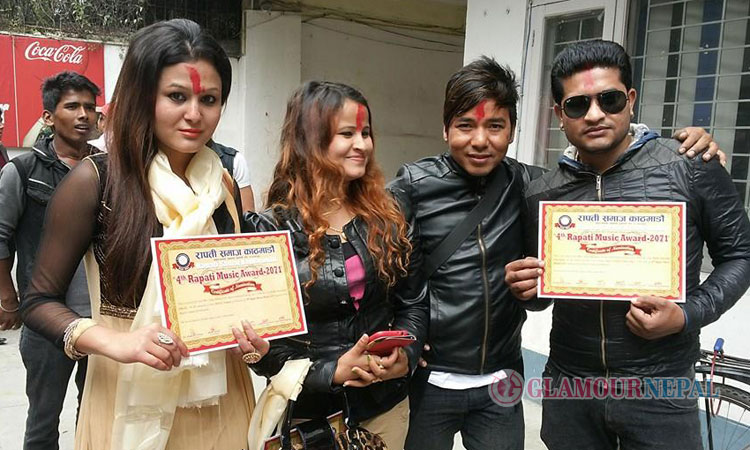 काठमाडौं । रापती समाजले आयोजना गर्न लागेको चौथो रापती म्युजिक अवार्ड २०७१ को उत्कृष्ठ पाँच मनोनयन सार्वजनिक भएको छ । वैशाख १८ गते राष्ट्रिय नाँचघरमा आयोजना गरिन लागिएको अवार्डमा राप्ती अञ्चलका पाँच जिल्लाबाट राजधानीमा आइ गीत संगीत र कला क्षेत्रमा सक्रियलाई प्रत्येक वर्ष अवार्ड प्रदान गरिन्छ । अवार्डका लागि समाजले गायिका कोमल ओली, संविधानविद् डा. भीमार्जुन आचार्य, नायक अर्जुन श्रेष्ठ र साहित्यकार रमेश क्षितिज सम्मिलित छनौंट समिति गठन गरिएको छ।