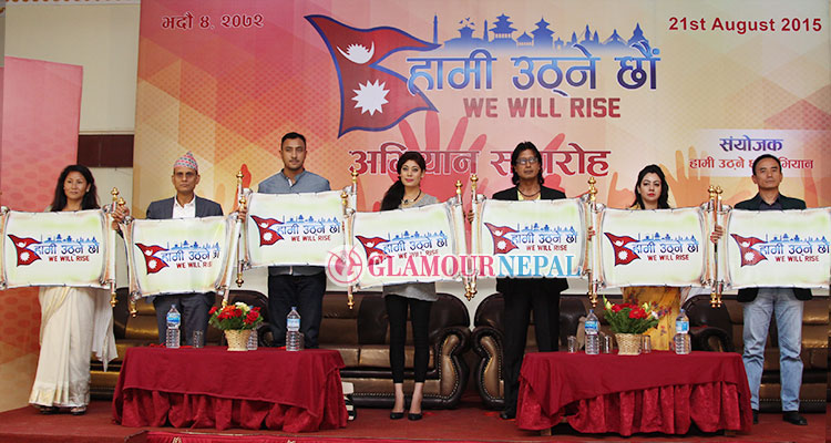 Celebrities from various fields including actor Rajesh Hamal, former Miss Nepal Sugarika KC and cricketer Paras Khadka take part in a programme organized to inaugurate’ We Will Rise Again’ campaign in Kathmandu on Friday 21st August 2015. Photo: Maheshwor Man Singh / Glamour Nepal