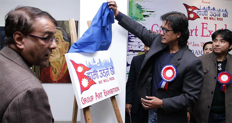 बबरमहलस्थित नेपाल आर्ट काउन्सिलमा ‘हामी उठ्नेछौं’ शीर्षकमा सामूहिक चित्रकला प्रदर्शनी बुधवार देखि सुरु भएको छ। नेपाली चलचित्रका महानायक राजेश हमालले ‘हामी उठ्ने छौं’ को लोगो अंकित चित्र अनावरण गरेर चित्रकला प्रदर्शनीको उदघाटन गरे। उनले चित्रकला प्रदर्शनीमा सहभागि भएका कलाकारहरुलाई सिद्धार्थ बिजनेश एण्ड हस्पिटालिटीबाट प्राप्त केक काटेर समेत खुवाएका थिए।