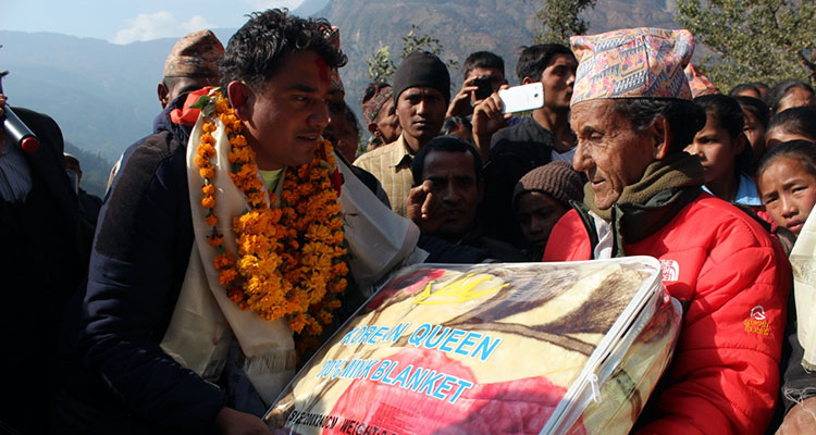 चिसो बढेर भूकम्प पिडीतको बिचल्ली भएपछि न्यानो प्रदानगर्न २०लाख रुपैँया बराबरको ब्ल्याङ्केट जुटाएको (NST) ले जनाएको छ। भूकम्पबाट बाँचेकाहरुको समेत चिसोले ज्यानलिनथालेपछि जति सक्दो धेरै परिवारलाई न्यानो दिनपहल गरेको सिताराम कट्टेल (धुर्मुस)ले जानकारी दिएका छन्। सरकारले सबै जनतालाई न्यानो दिन नसकिरहेको समयमा केहि मानीसलाई भएपनि चिसोबाट बचाउन आफुहरुले सहयोगकालागि सकेको पहल गरेको उनको भनाई छ।एउटा ठूलो विपद्बाट बाँचेकाहरुको जाडोका कारण मृत्यु हुनु दुखद् कुरा भएकाले जतिलाई सकिन्छ सहयोग गर्ने आफ्नो योजना रहेको धुर्मुस सुन्तलीले सुनाएका छन्।