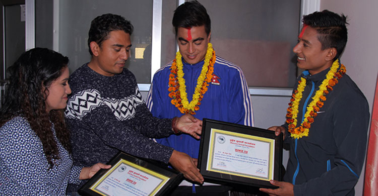 २३ वर्ष पछि इतिहास रच्दै साउथ एसियन गेम्समा स्वर्ण पदक जित्न सफल भएका नेपाली फुटबल टोलीलाइ धुर्मुस सुन्तली फाउण्डेसनले नगदसहित सम्मान गरेको छ। फुटबल खेलाडीले सारा नेपालीलाई गौरवान्वित तुल्याएको खुशियालीमा फाउण्डेशनले २ लाख रुपैँया नगदसहित कदरपत्रले सम्मान गरेका हो। भारत विरुद्धको फाइनल खेलमा विजय हाँसील गरि स्वदेश फर्किएका खेलाडीहरुलाई धुर्मुस सुन्तलीले आफ्नै कार्यालयमा एक कार्यक्रमका विच सम्मान गरेका हुन्।