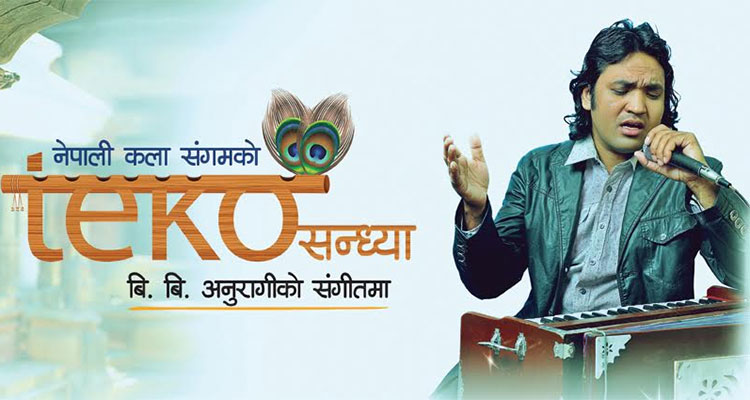 कला र गला भए पनि पछाडि पर्दै आएका कलाकारलाई अगाडि ल्याउने र समाजमा विद्यमान विकृतिहरुलाई नाटक र गीत संगीतमार्फत उजागर गर्ने उद्येश्यले स्थापित नेपाली कला संगमले गीतकार, संगीतकार तथा गायक बिबी अनुरागीलाई एकल साँझमा उतार्ने भएको छ। नेपाली कला संगमले निर्भाना कला केन्द्रको सहकार्यमा भूकम्पबाट क्षतीग्रस्त धादिङको चण्डीदेवी माध्यमिक विद्यालय र सिन्धुपालचोकको जनता माध्यमिक विद्यालयको पूर्न निर्माण तथा बृद्धाआश्रममा आश्रति बृद्धबृद्धाको सहयोगार्थ संगीतकार अनुरागीलाई पहिलोपटक राजधानीमा एक साँझमा उतार्न लागेको संगमका सल्लाहकार तथा कार्यक्रम संयोजक सुदर्शन महर्जनले जानकारी गराए।