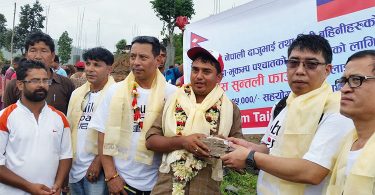 स्वर्ण पदक विजेता नेपाली फुटबल टिमलाई धुर्मुस-सुन्तलीले गरे नगदसहित सम्मान